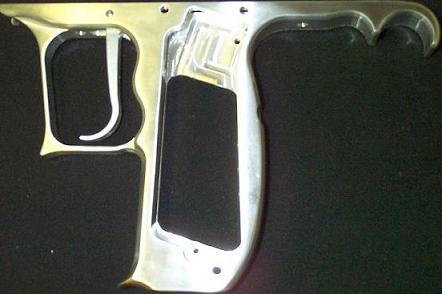 Tarantula Paintball gripframe for your Angel LCD. This gripframe minimizes the painful "gooseneck"