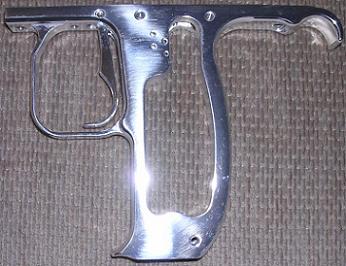 Grippy in the back, so you can hang on to your "baby" more comfortably, and more safely than holding it by the regulator with the barrel pointing up at yourself! Two trigger pivot points allow you to set the trigger up how you like it. For typical "pull back" trigger pulls, put the pin in the front hole. For those of you who prefer to pull downward on the hook of the trigger, use the rear hole for more of a rocking action. It includes